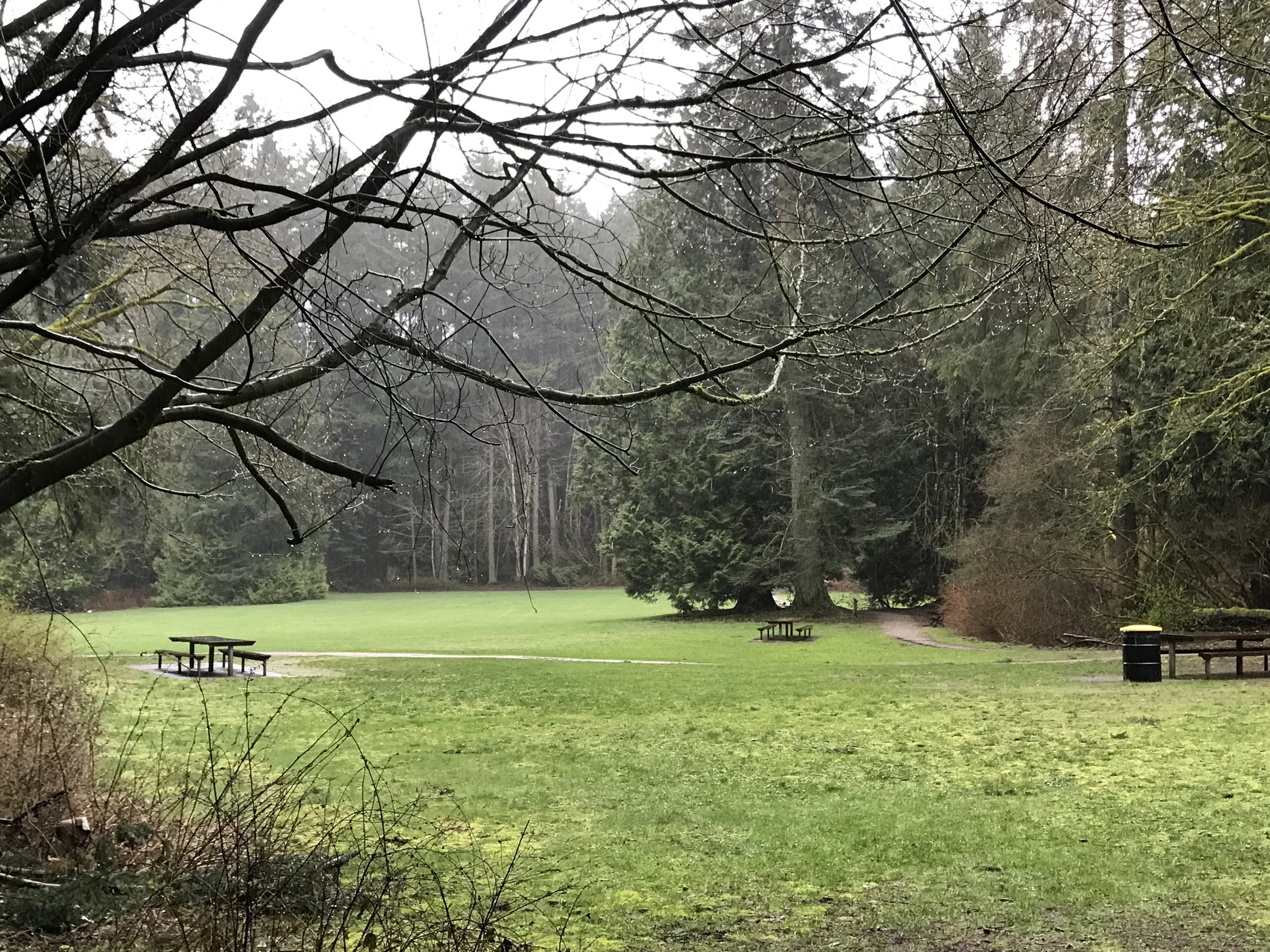 As it was yet another wet and dreary day we decided to seek out a spot that offered a canopy to provide us with additional protection from the blustery rain over the moody often enticing view that the shoreline parks would provide. We settled on Crescent Park at 129th Street and Crescent Road in Surrey. It's a relatively small park. In an hour or two, after weaving in, out and through the various paths you can leave satisfied that you've seen it all. Contrary to its small stature, Crescent Park offers all of the perks, and in some cases more, than its local rivals, like Campbell Valley, Redwoods Park, and Green Timbers. An abundant canopy kept us relatively dry as we explored its babbling brooks, pint-sized lake, a massively ancient uprooted tree that offered itself as additional shelter from the elements, a well appointed playground was central to the park as well as a welcoming wide open grass space enveloped in trees to provide shade in the heat of Summer. The restrooms were, thankfully, clean and easy to find. One additional great thing about Crescent Park is that given it's smaller stature, you never worry about getting lost. So if you do venture to Crescent Park, do not lose heart when you discover that there are no trail markers... in fact do the opposite, meander down any path that calls your name, and be certain that you will find your heart along it, out there, in the great beautiful outdoors.