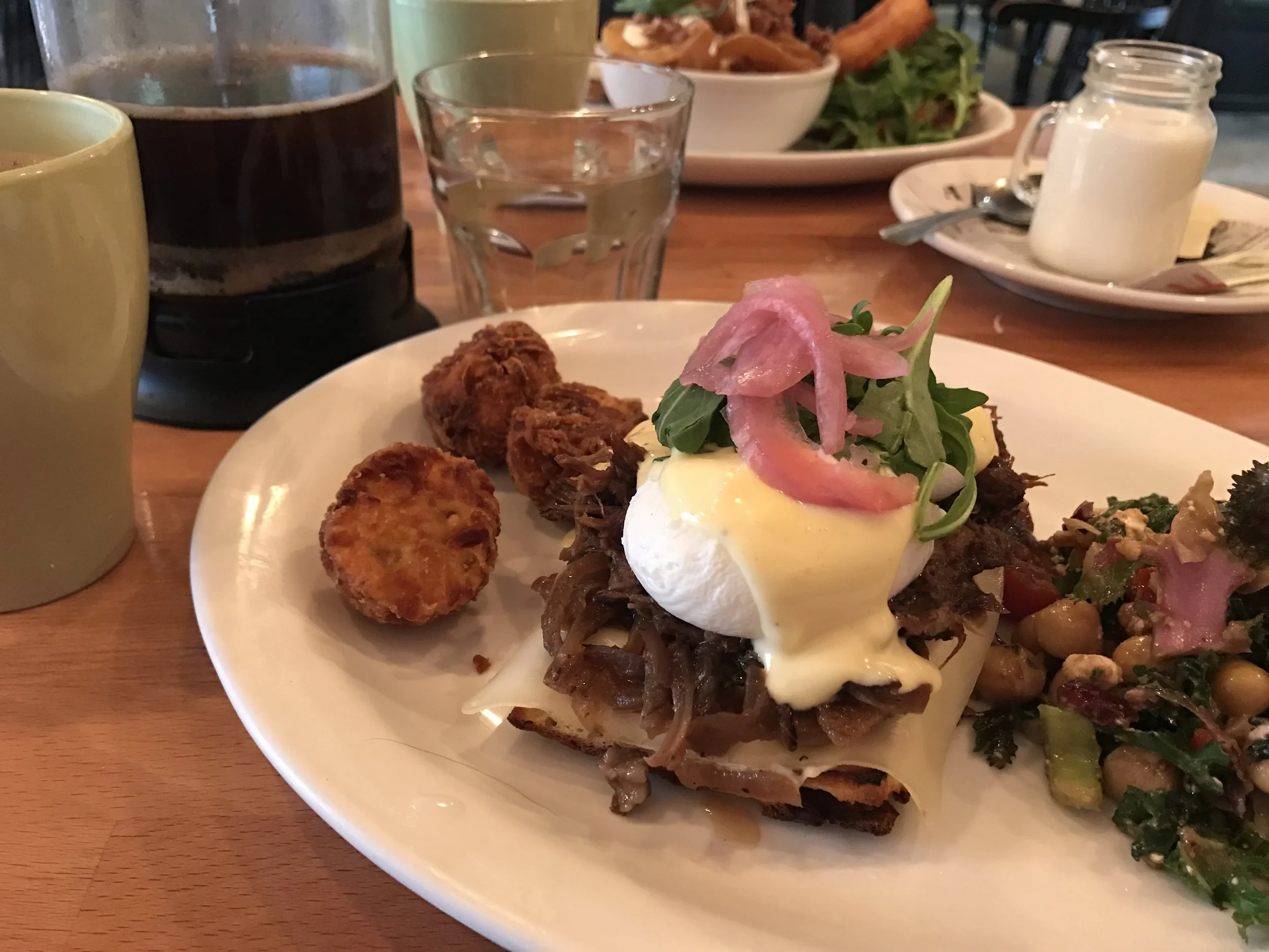 After consuming this park's natural pocket-sized wonder and assuring ourselves that our restless souls had been replenished, we decided it was time for some additional comfort. We found anything and everything else we needed to fill any remaining unoccupied soulful spaces within ourselves at Wooden Spoon in White Rock. It was almost upon arriving that this occurred. Open the door and let one waft of mouth-watering decadence wash over you. Yum. I had the Short Rib benny with my eggs poached soft. Every single ingredient on this menu item's description is meant to corrupt you and leave you peaceful at the same time (hmmm, perhaps it's name says more than I first recognized?). I mean house made kahlua jus and horseradish aioli?! The red pickled onions put this dish over the top and added just a titch of sweet and sour to a very savoury, thick, and unforgettable dish. It was equally refreshing to order coffee and receive a French press carafe all for me to enjoy at my leisure. Worried you won't be able to eat leisurely? You can, even if you bring the kids. A well-appointed play room complete with a wall-sized chalkboard means you can have your benny and eat it too.